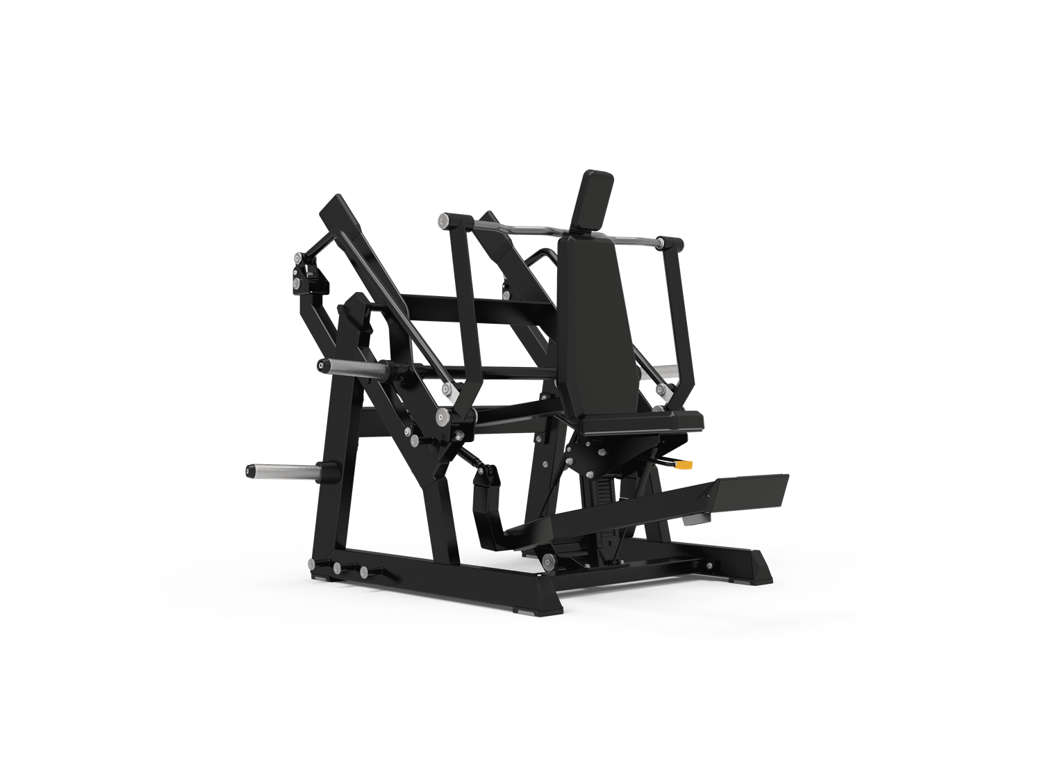 Un elemento distintivo dell’ECP 504 è la leva di precarico, situata frontalmente rispetto al sedile. Questa leva permette di iniziare e terminare il movimento da una posizione ergonomica, riducendo lo stress articolare e migliorando la sicurezza dell’esercizio, soprattutto con carichi elevati. L’accesso al lavoro è fluido e controllato, anche per utenti meno esperti.